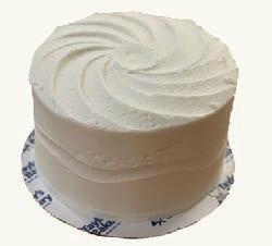 *Advance order required.* 2 layers of our famous white cake with that signature almond rum flavor, covered in our white cream icing. Serves 10