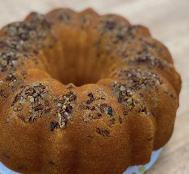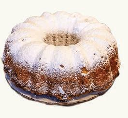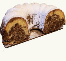 A half yellow cake bundt swirled with cinnamon, pecans, and sour cream, resulting in an extra moist texture. Finally, it is finished with powdered sugar for a delectable finishing touch.