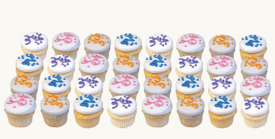 When individual or handheld desserts are more appropriate, we also offer customization on our butter cookies, 12” cake cookies, cupcakes, pull-apart cupcakes, sheeted brownies, and petit fours.