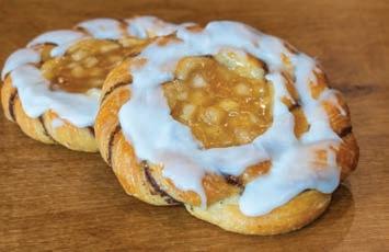 Danish dough swirled with cinnamon, complemented by cinnamon apple filling and white icing.