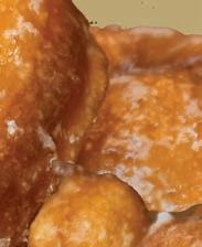 Chewy deep-fried danish dough dipped in a donut glaze.