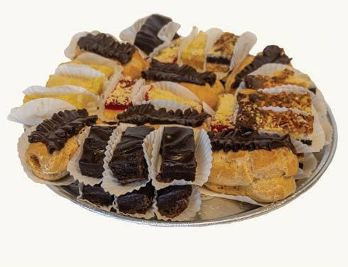 The miniature version of our large eclair. A light, airy pastry filled with non-dairy custard and topped with fudge icing.