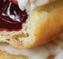 Yeast donut filled with raspberry jelly and topped with white icing.