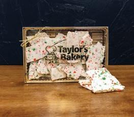 White chocolate bark mixed with fresh crushed peppermint and broken into bitesized bark pieces. Available in the winter.