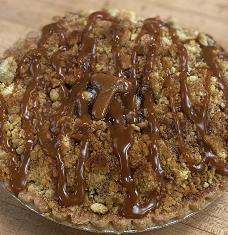 A flaky crust filled with spiced Idared apples, homemade caramel, and a crumbly streusel, all topped with more caramel. 8 servings.