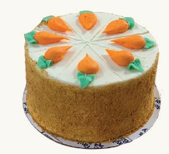 Three layers of spiced carrot cake filled with pecans, cream cheese icing, crushed graham cracker coating, and then scored for your friends and family to enjoy! Serves 8