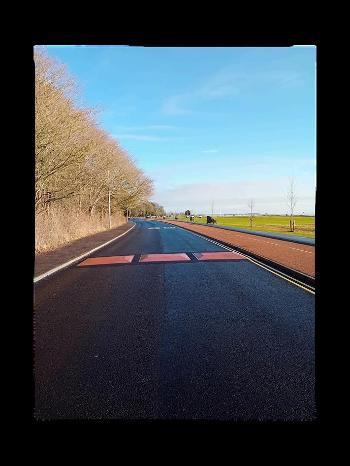 Chargehands Rory Keen and Stephen Johnston and their surfacing team completed the carriageway resurfacing and tabletop features, bringing the route up to a high-quality finish.