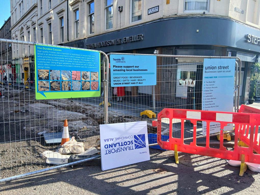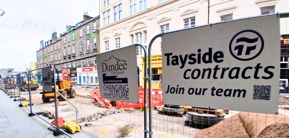 Site works began in January; to date we have set up the site, completed site clearance and earthworks as well as commencing major drainage improvements Tayside Contracts’ Sign Shop has produced additional signage to highlight to the public that businesses are open as usual.