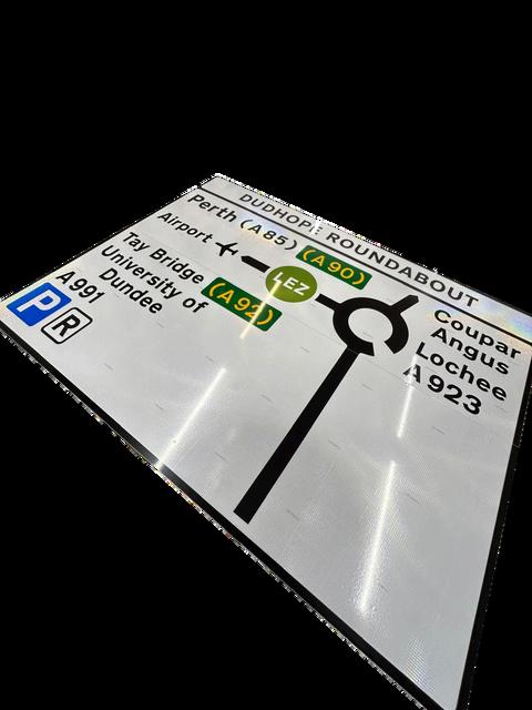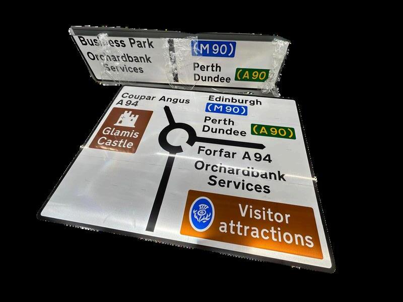 The Orchardbank business park have ordered a replacement signage for the Forfar McDonald’s junction on the A90 to incorporate the business park. These signs were manufactured in multiple pieces and fit together with clips once erected.