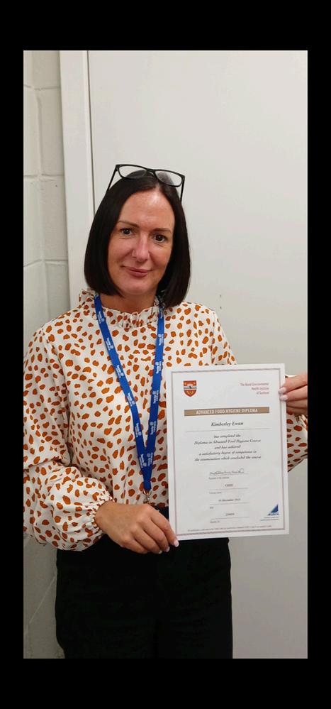 We are delighted to share that Kim Ewan has successfully completed her REHIS Advanced Food Hygiene Diploma an outstanding achievement.