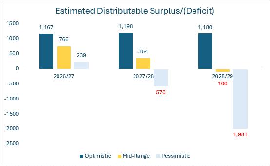 These factors, combined with recent global economic disruption and elevated inflation, significantly increase forecasting uncertainty. As a result, the projections represent a broad indication of potential outcomes, rather than a fixed financial plan, and will be refined annually through the budget-setting process.