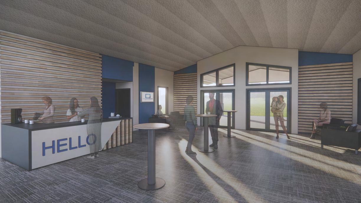 All colors seen throughout the project are applied throughout the waiting area to allow guests to get a glimpse of what the space will be like before entering.