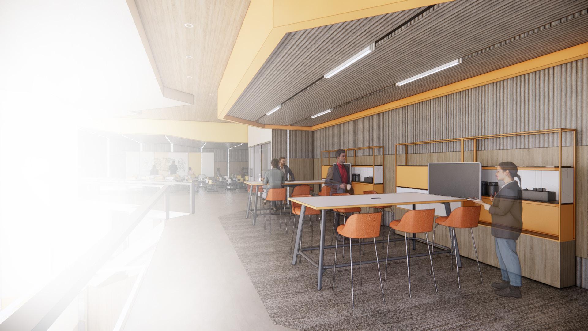 The third floor lounge area boasts a coffee bar where one can watch the sunrise while enjoying food, drinks, and conversation.