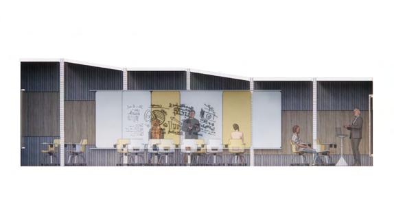Marker boards are to allow for pinups and can easily be stored in the neighboring design library.
