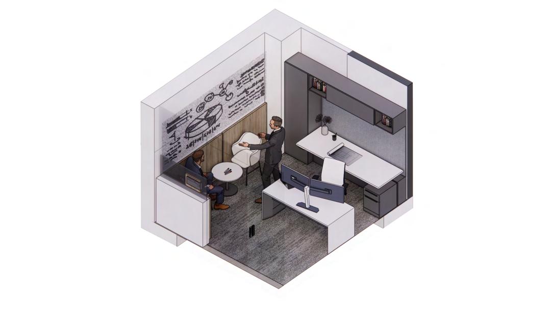 Huddle rooms are close in proximity to phone rooms to allow a guest or worker to step out and take a call.