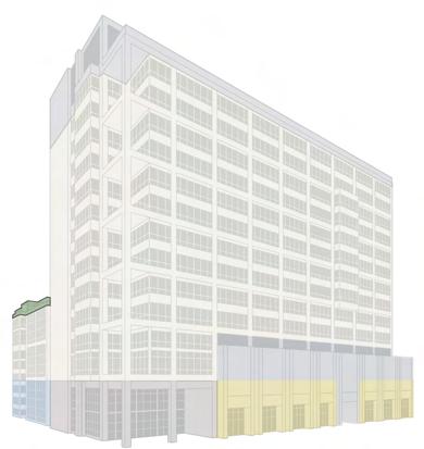 This building includes three elevators allowing guests with diasbilities access to all oors.