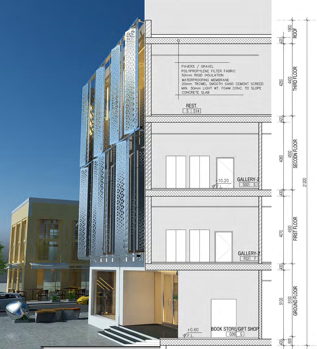 Layan gallery is created to host not only over 200 objects from Saudi traditional and modern art but also from famous artists from all over the world. Different facade options were made an alternative to the traditional Mashrabiyas (Screen).