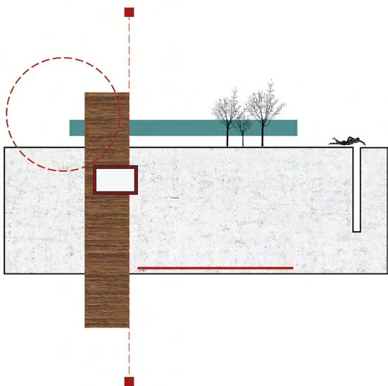 A personalized landscaped space for the manager was designed enclosed with perforated panels to make it partially concealed from the road.
