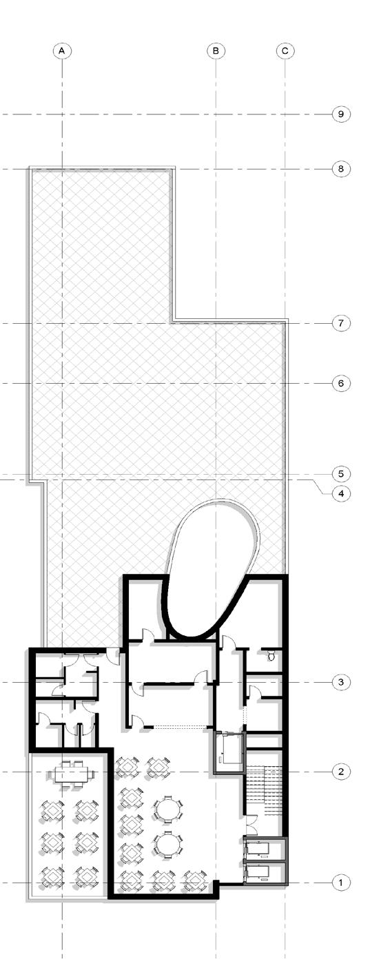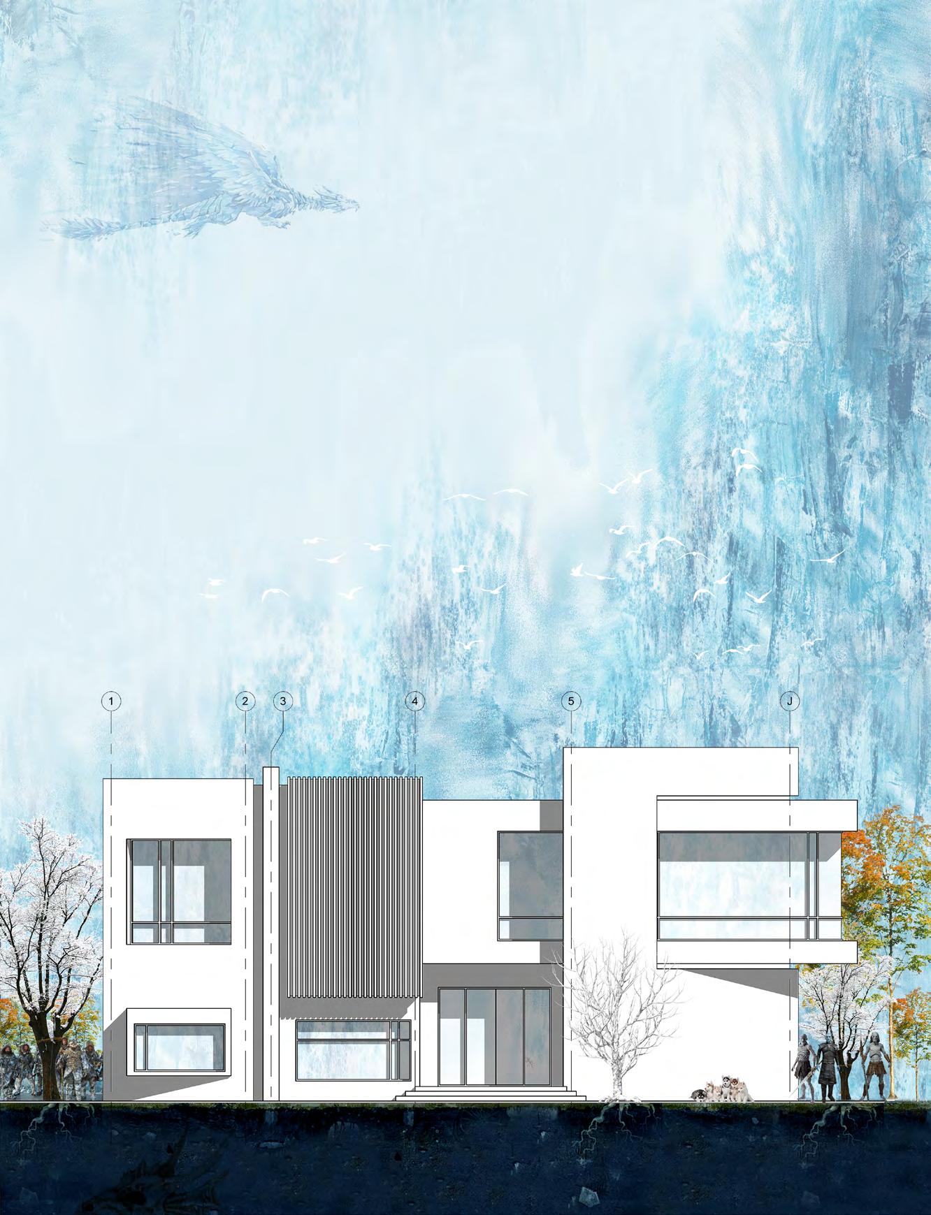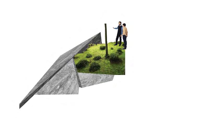 The most grounded of the ‘rocks’. Rela�ng to the earth and se�led amongst the ‘plain’ this structure is composed of rough cut planes of dark grey Irish stone. Housing the library, it represents the great bedrock of Irish and Japanese literature.