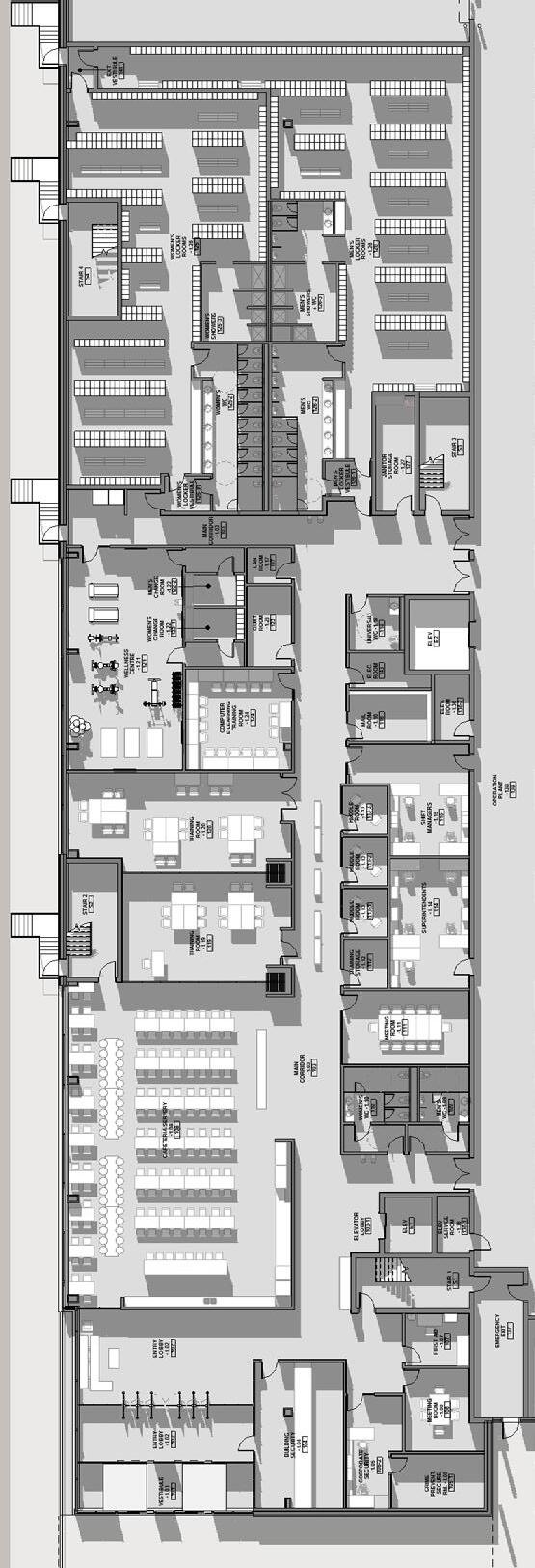 The public zone is found in the nexus of all three rocks and their rela�onship with the plain. Visitors will enter via the large void atrium space and so will immediately visually connect with all the structures. The two storey library is housed in Rock 3 while the Hub is located in the ‘plain’ on which the rocks sit upon.