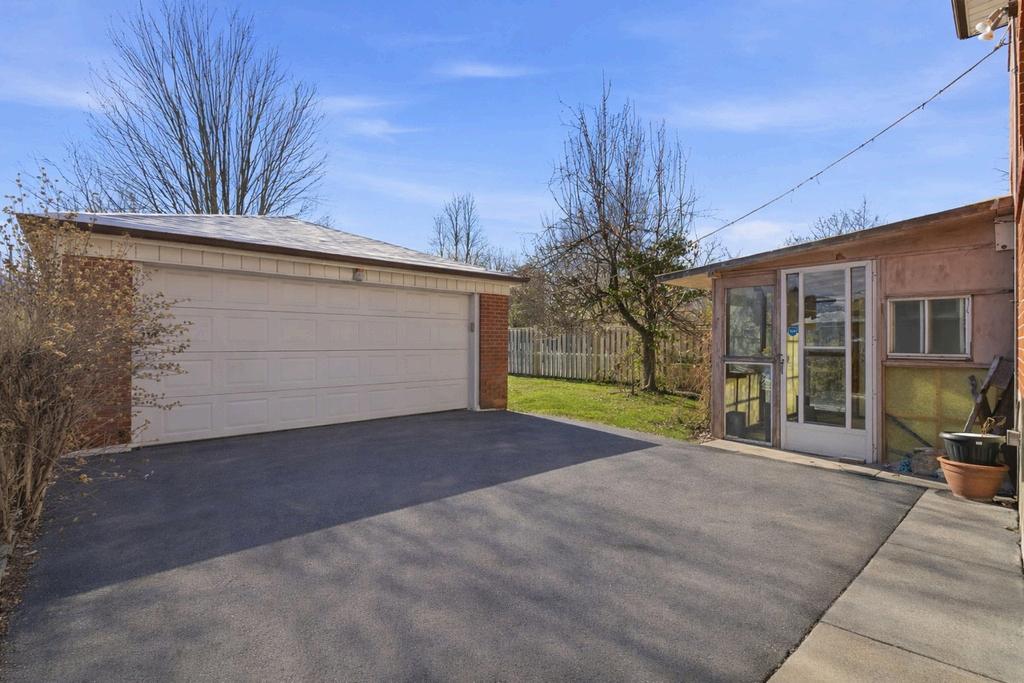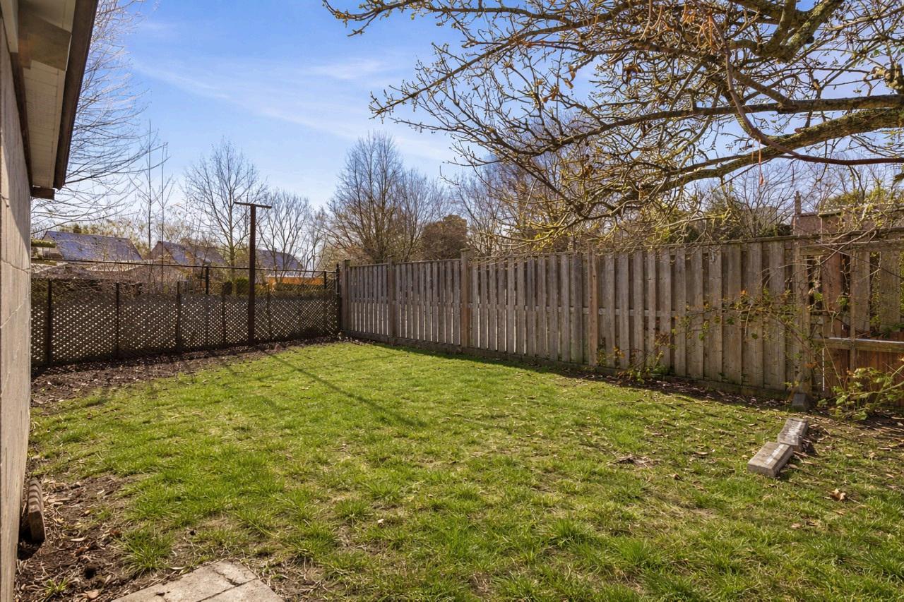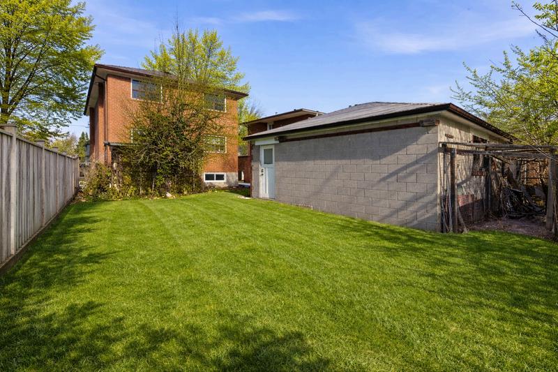 The backyard offers exceptional privacy, bordered by parkland on the side and rear with no neighbouring sightlines. While modest in size, it features a grassy area anchored by a beautiful pear tree, a closed-in back patio for seasonal enjoyment, and a long private driveway leading to a double car garage practical, peaceful, and full of charm.