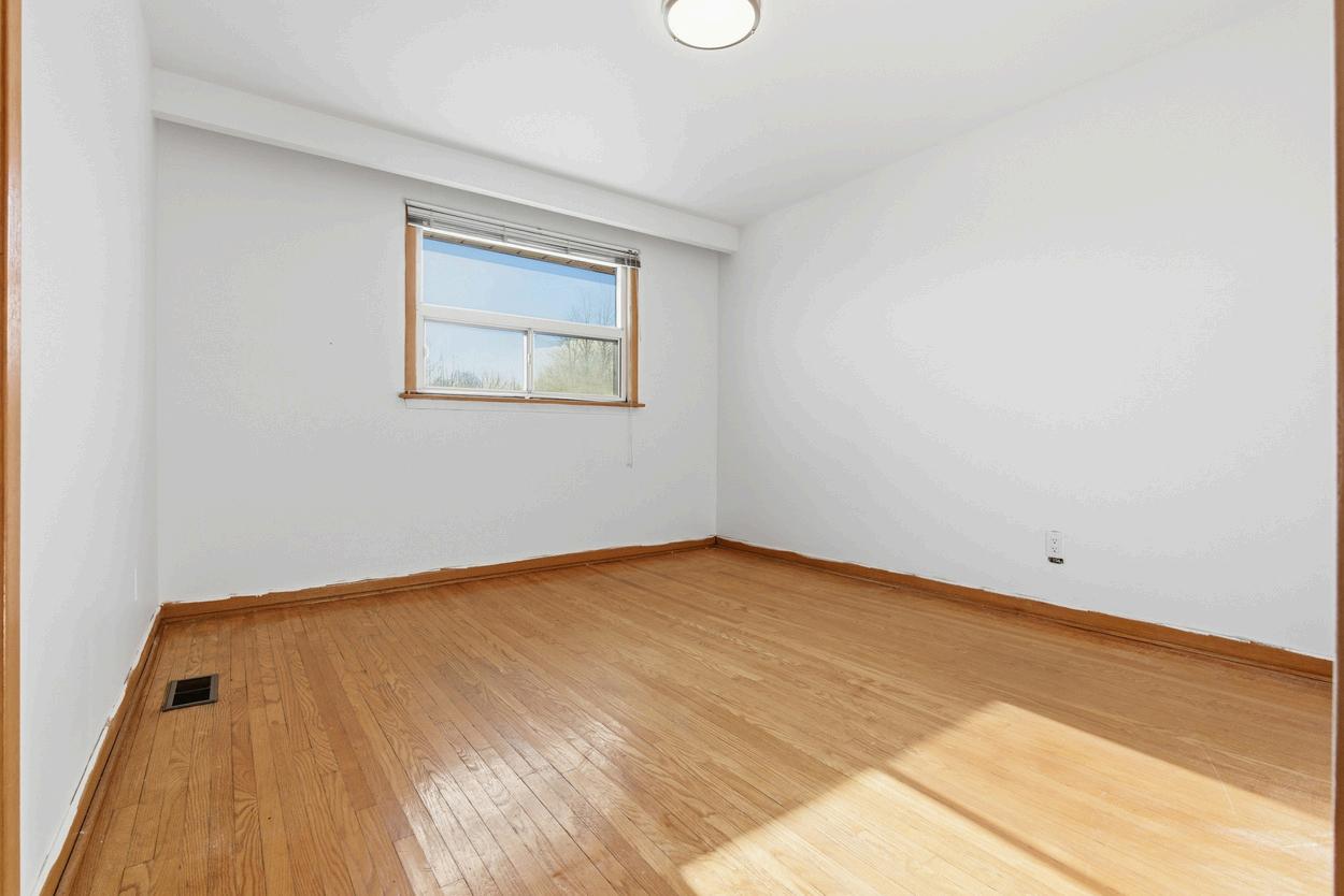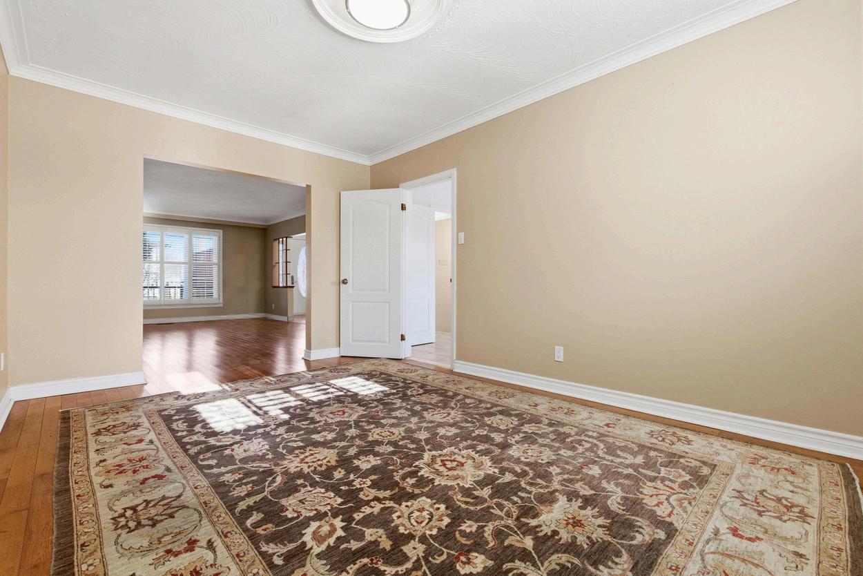 The main floor features a bright, airy layout filled with natural light and rich hardwood flooring throughout. A large, separate living room and dining room create an ideal balance of everyday comfort and elegant entertaining, offering excellent flow for both family life and formal gatherings. The main hallway draws you naturally through the home, ending at the spacious, open kitchen an inviting focal point with endless potential. A beautifully finished wooden staircase leads to the upper level, adding warmth and architectural character. Completing the main floor is a convenient 2-piece powder room located just off the front foyer, perfect for guests and daily living.