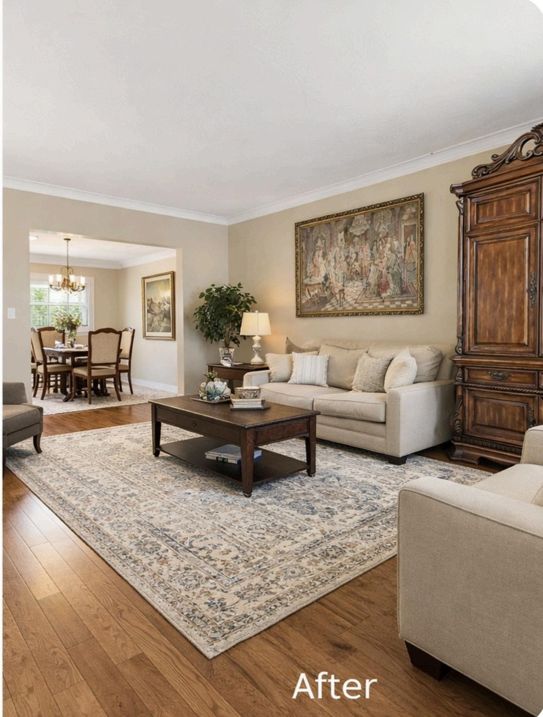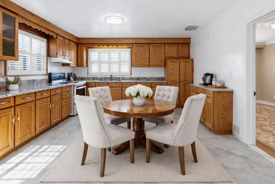 A large, sun-filled separate dining room located adjacent to the kitchen, comfortably seating 8–10 is perfect for family meals and holiday gatherings.