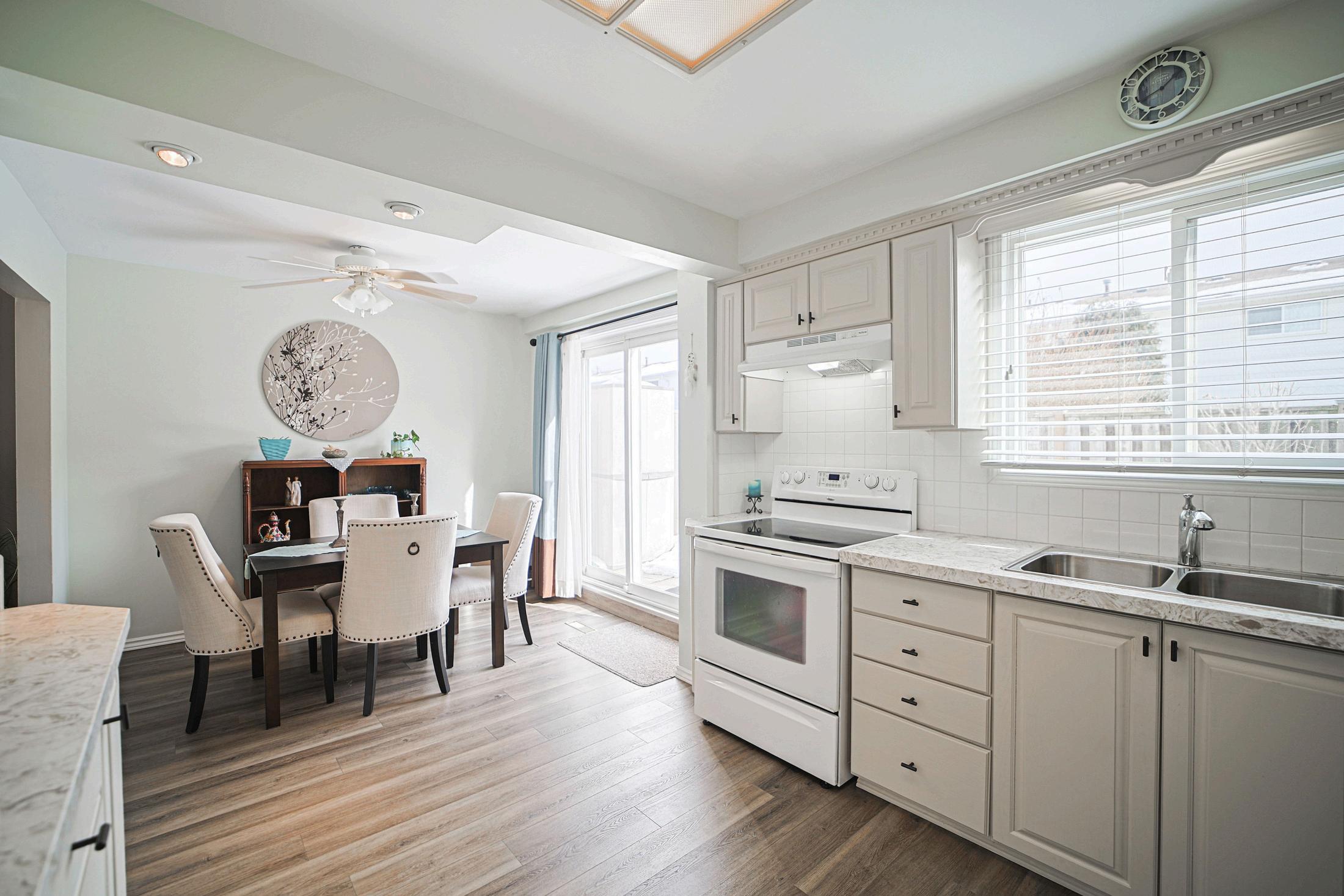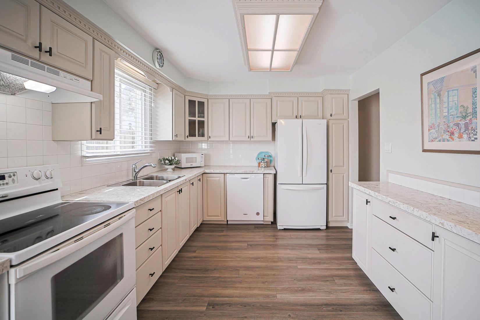 This bright and welcoming home offers 3 bedrooms & 2 bathrooms, with a functional layout designed for everyday comfort. The main floor features laminate flooring throughout, while the kitchen was updated to include quartz countertops, painted cabinetry, a dishwasher, and range hood in 2022. Morning and mid afternoon sun fills the kitchen and private back patio, creating a cheerful beach inspired atmosphere.
