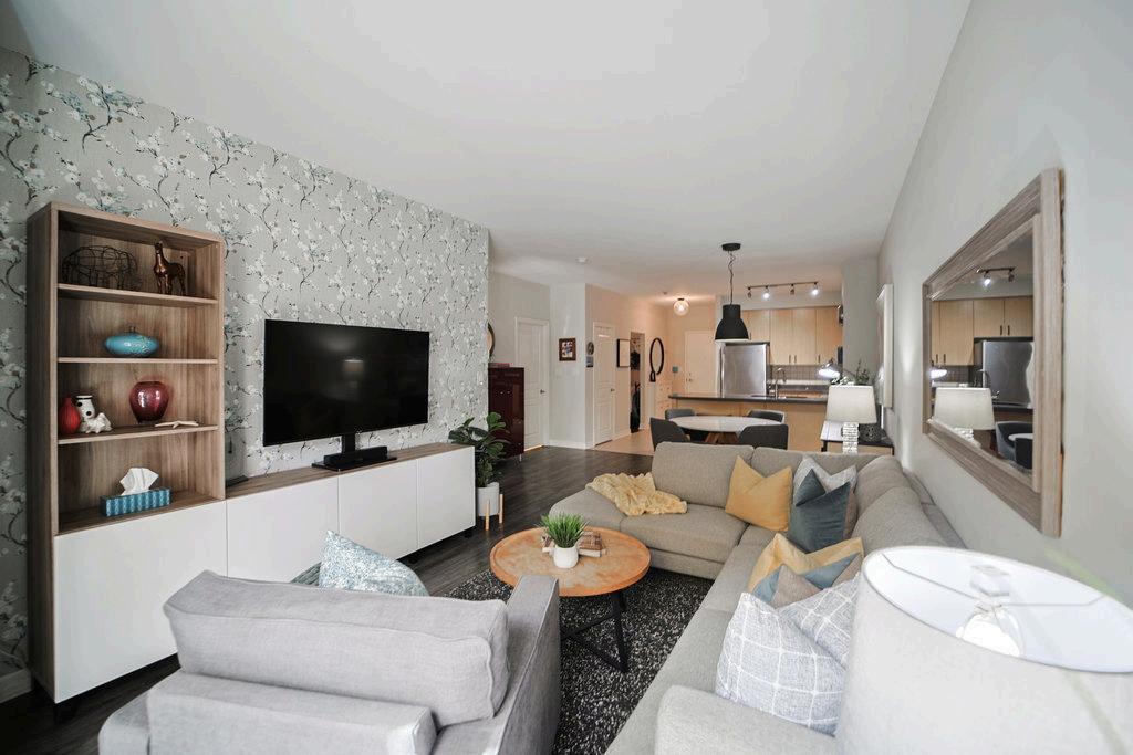 This inviting 1-bedroom-plus-den suite offers 903 sq ft of stylish, open-concept living. Enjoy the rare benefit of a walk-out terrace, not a balcony perfect for morning coffee, potted plants, or a small garden oasis.