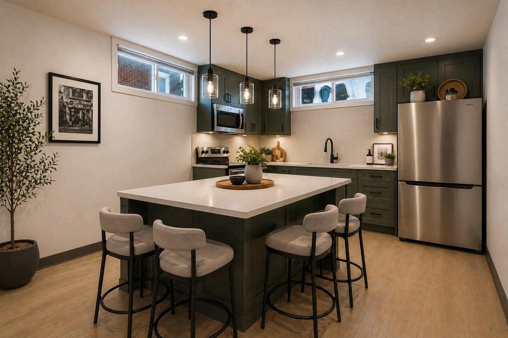 The basement is practically a blank canvas. The existing kitchen and famliy room area can be easily renovated with new flooring, paint and Contemporary furniture to bring life to the space. Make it an extension of your upstairs living space or turn it into a secondary living space.