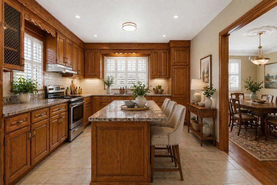 Whether you decide to stay with the traditional look of the kitchen and add some updated features or completly update to a Modern look, you have the space you need for everything