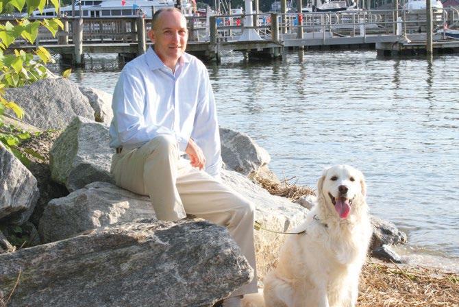 Dr. Kearns practices veterinary medicine from his Port Jefferson office and is pictured with his son Matthew and his dog Jasmine.