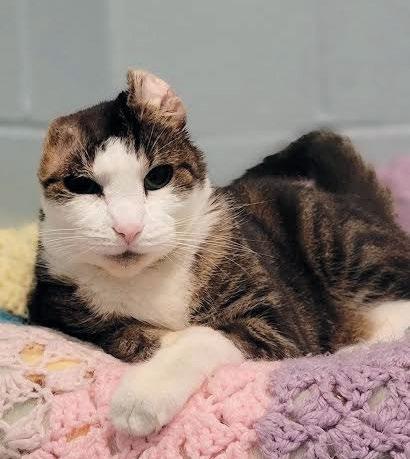 This beautiful and affectionate 10-yearold girl arrived at the Smithtown Animal Shelter as a stray. She had suffered long term bilateral ear infections that caused her heavy scarring of her outer ears, severe thickening of her ear canals, hearing loss and incredible pain. The hard decision was made to remove both of her ears to let her know a pain free existence. Hollie went through the first surgery like a champ, never stopping her undying affection for everyone. She will have her second surgery shortly, and then will be ready for her home. She is social with other cats and all people. As a result of the surgery, Hollie may temporarily or permanently lose her ability to blink one or both eyes (only time will tell), so a potential home will have to be able to lubricate her eyes several times a day for her. 631-360-7575.