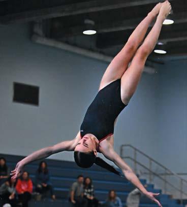 Pictured clockwise from above, Casey Ryan off the diving board; Victoria Mackay in the water: Caitlin Fleece off the diving board; Kristina Rezler in the pool.