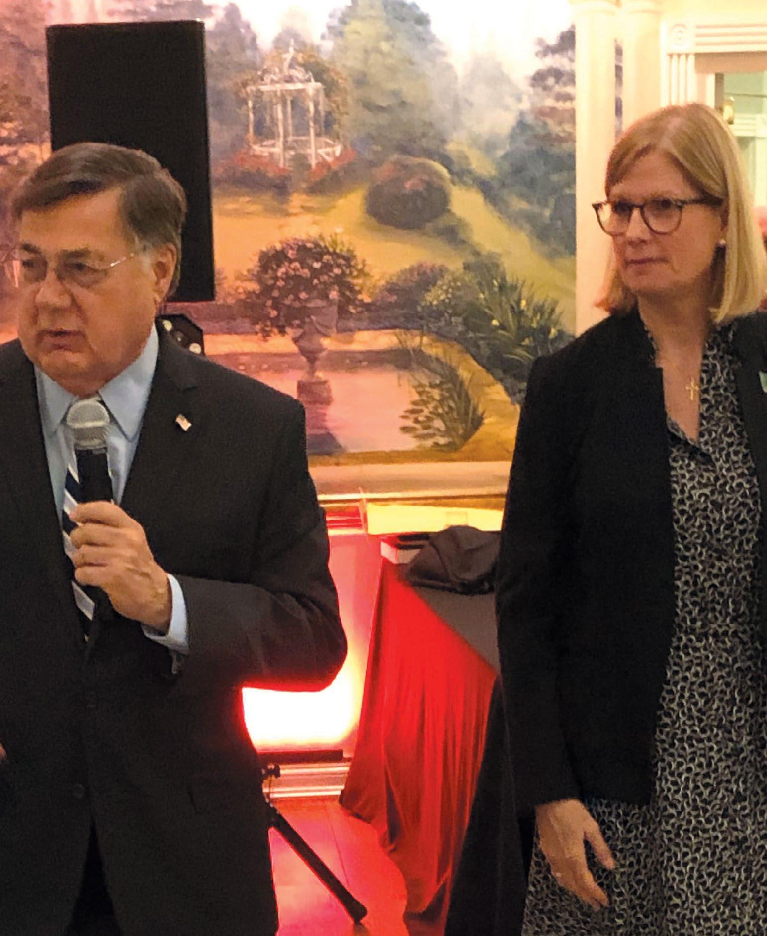 Pictured above: Town of Brookhaven Supervisor Ed Romaine, left, and Councilwoman Jane Bonner, right, during the Wading River Fire Department’s annual installation dinner. Photo courtesy the Brookhaven Public Information Office
