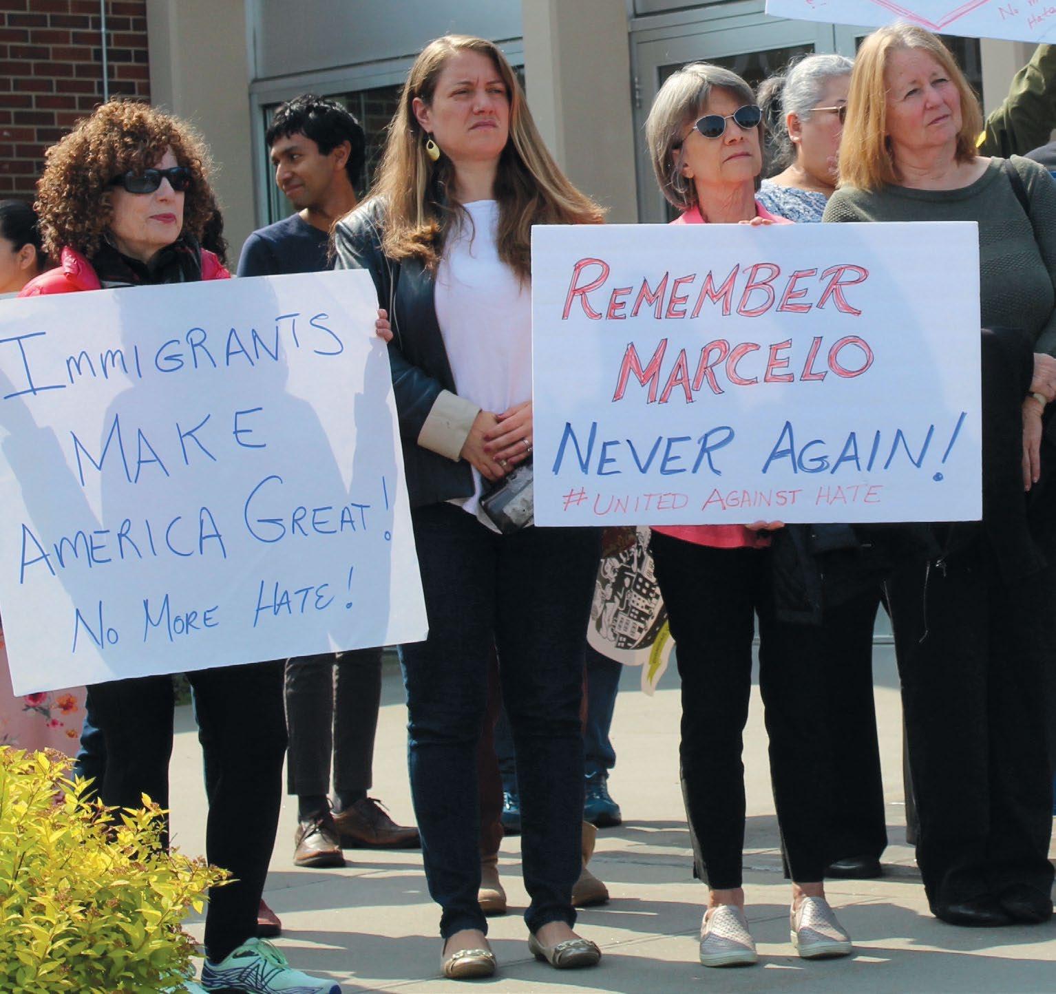 Protesters outside the William H. Rogers Legislature Building in Hauppauge during a press conference Tuesday, May 23. File photo by Raymond Janis