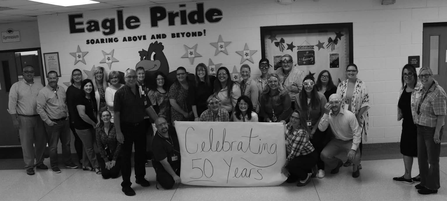 Rocky Point Middle School staff members with Robert Ciaccio (standing, first row, left front). Photo courtesy RPSD