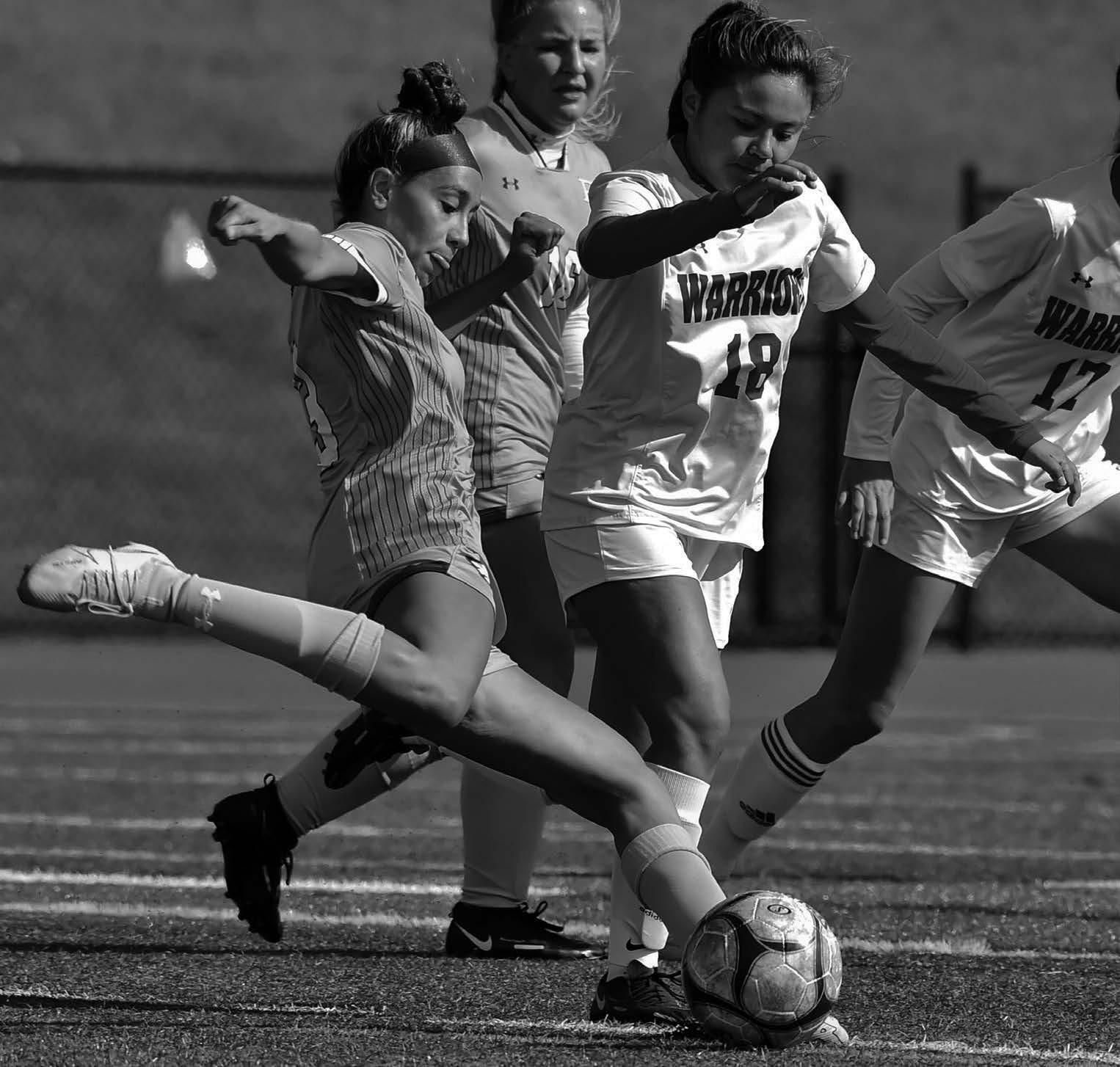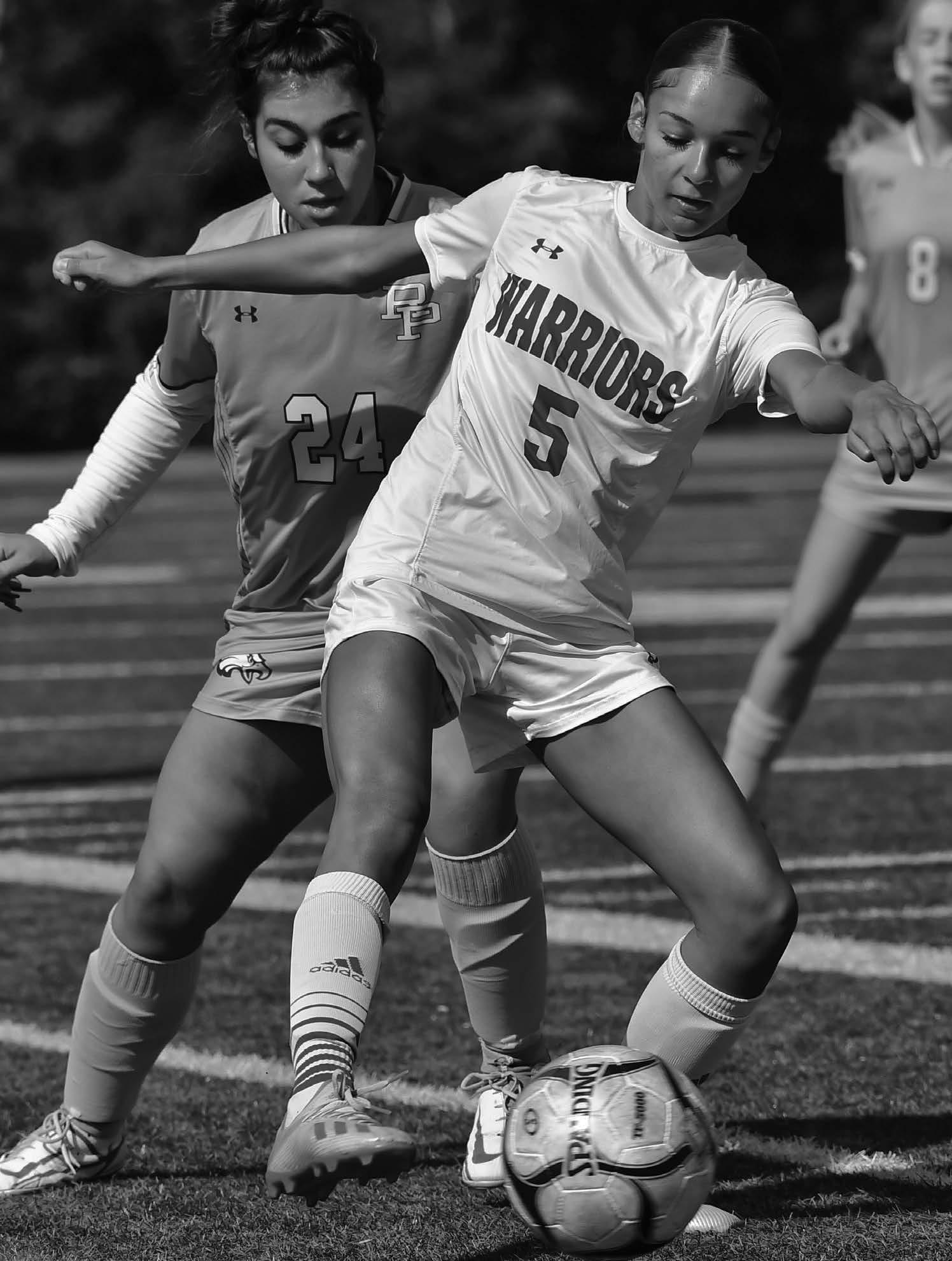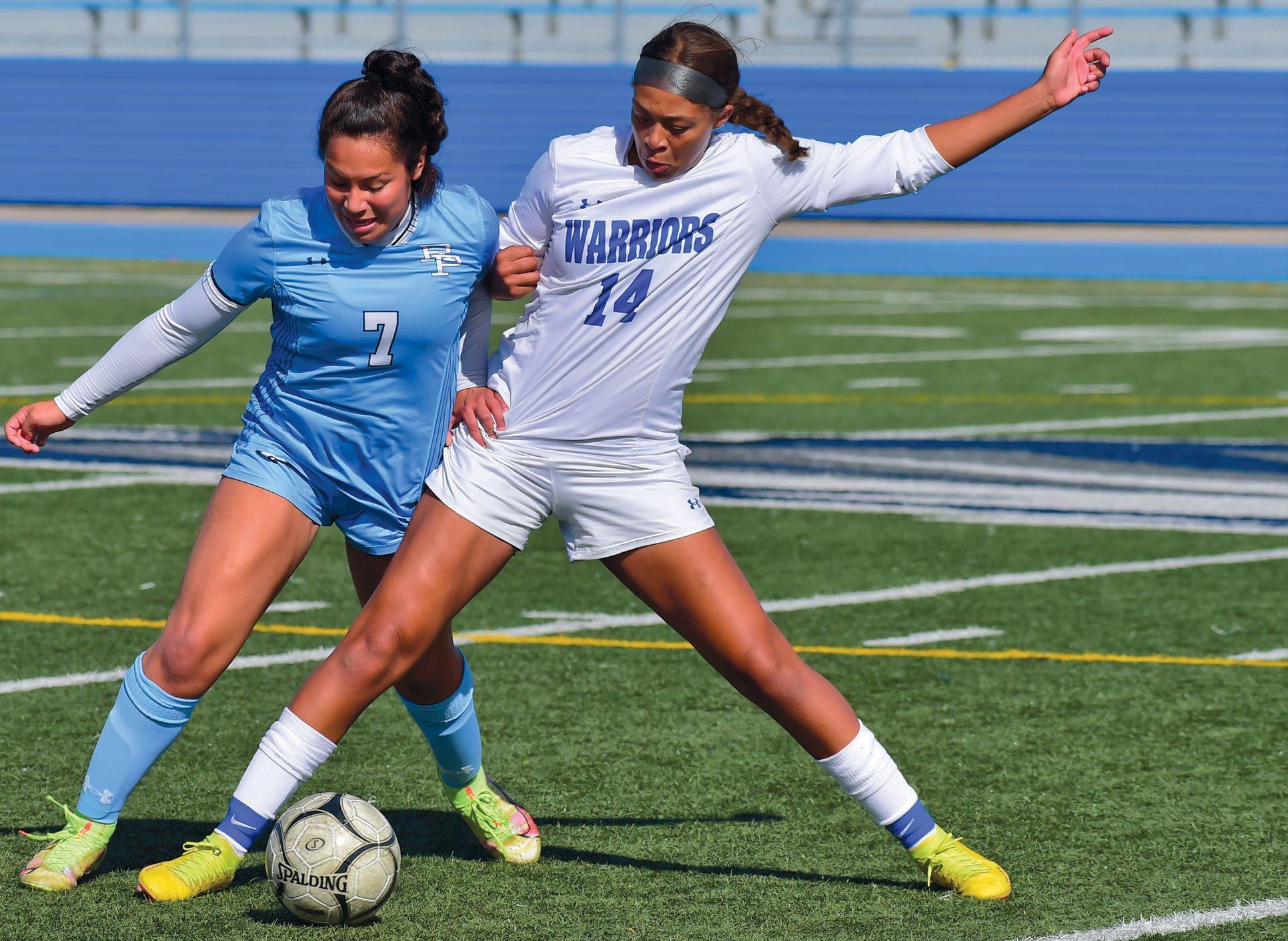 Rocky Point’s Emely Velasquez battles freshman Isabella Fragapane in a League IV matchup on Saturday, Sept. 24.