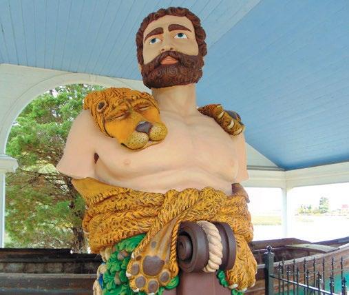 The full-color Hercules carving, located in Stony Brook since 1951, features the head and shoulders of the Greek demigod — known for his exceptional strength — draped in a lion’s skin. The bust was once the USS Ohio’s figurehead. The ship was the first to be launched from the Brooklyn Navy Yard in 1820.