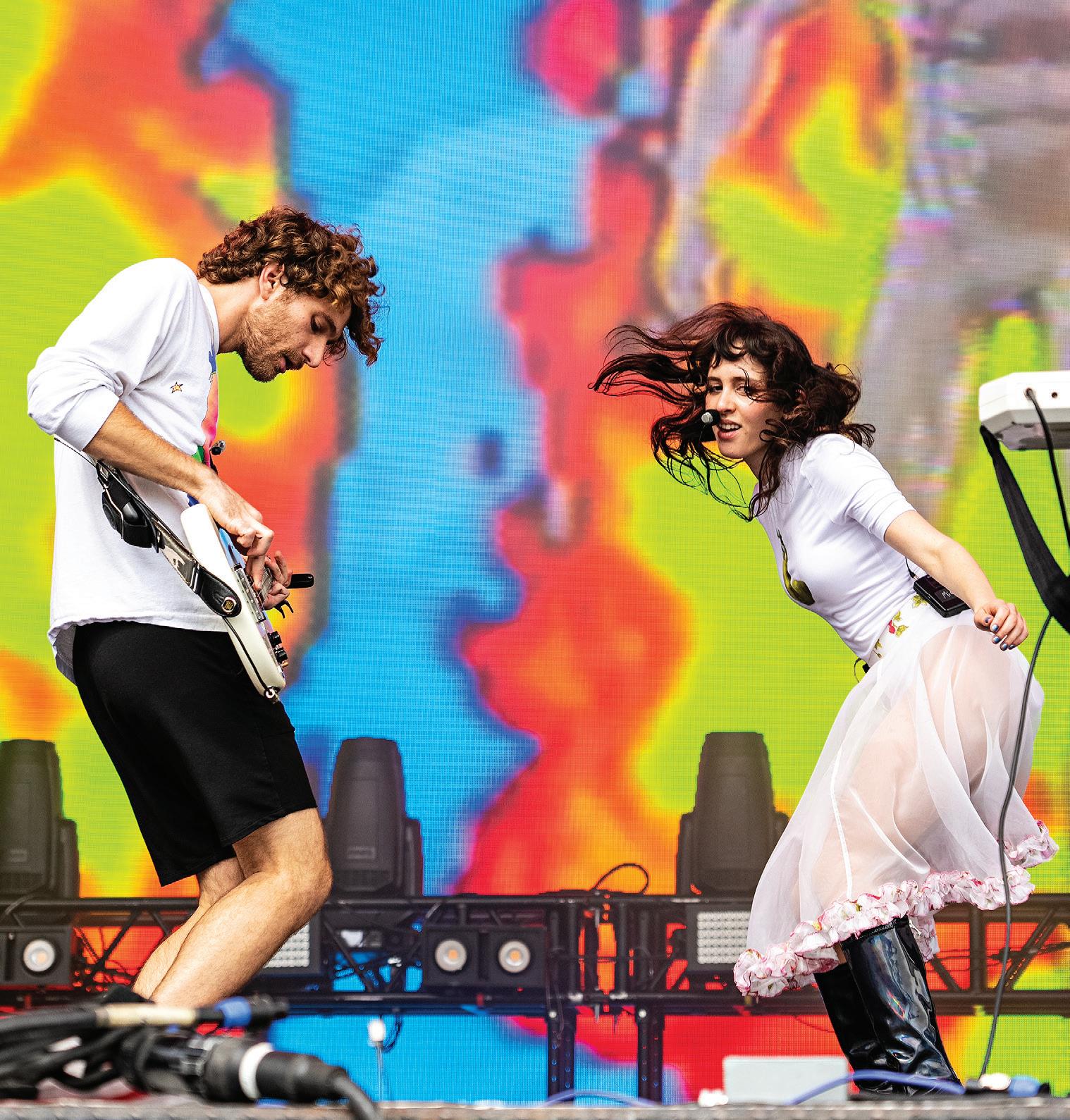 Matthew Lewin, left, and Mica Tenenbaum of Magdalena Bay perform on Day 4 of the Lollapalooza Music Festival on Aug. 6, 2023, at Grant Park in Chicago.