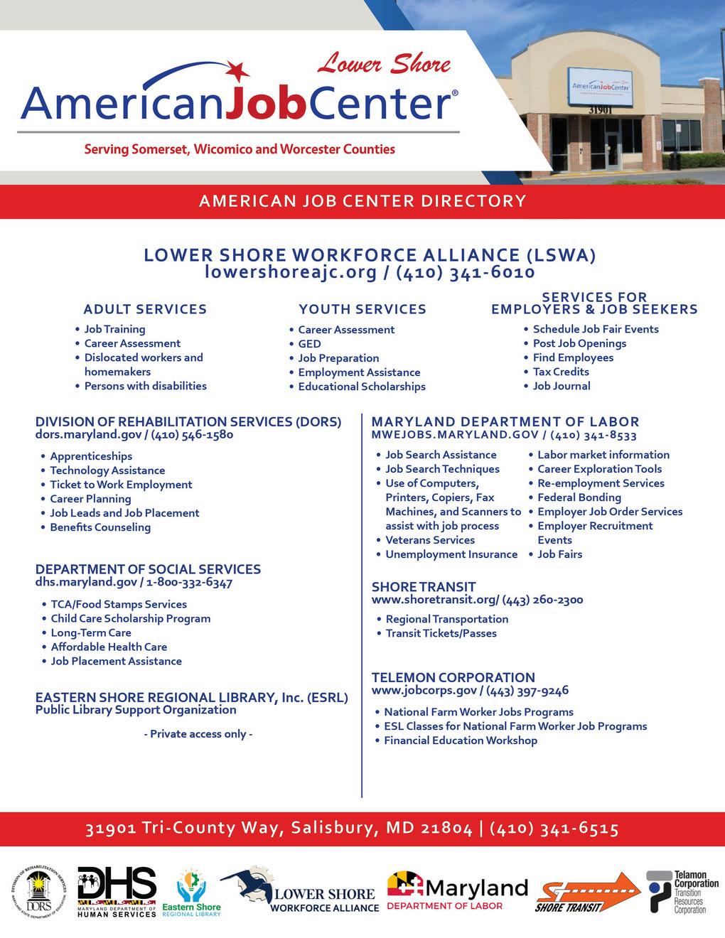 The Lower Shore Workforce Alliance is proud to share our new Job Journal with you this month. Operating as a division of the Tri-County Council, we are one of the 13 workforce development boards in the state of Maryland. Through Job placement, certification, further education, and more—the Lower Shore Workforce Alliance does everything workforce. This Job Journal is provided free of cost to assist job seekers in the Tri-County area and features potential employment opportunities, further education & certification opportunities, and job supporting programs in this area.