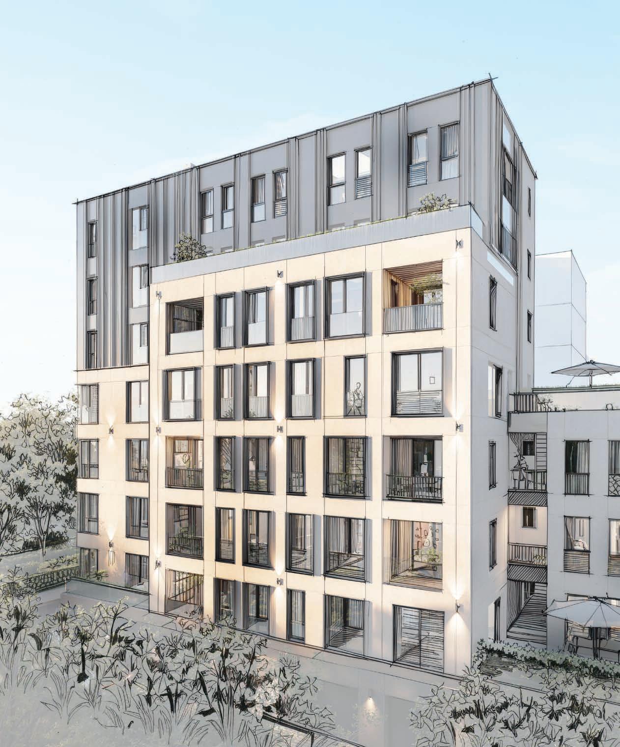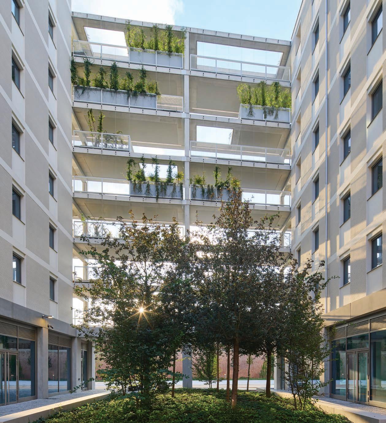 вдъхновена от традиционните милански case di ringhiera – сгради с общи галерии и дворове, които