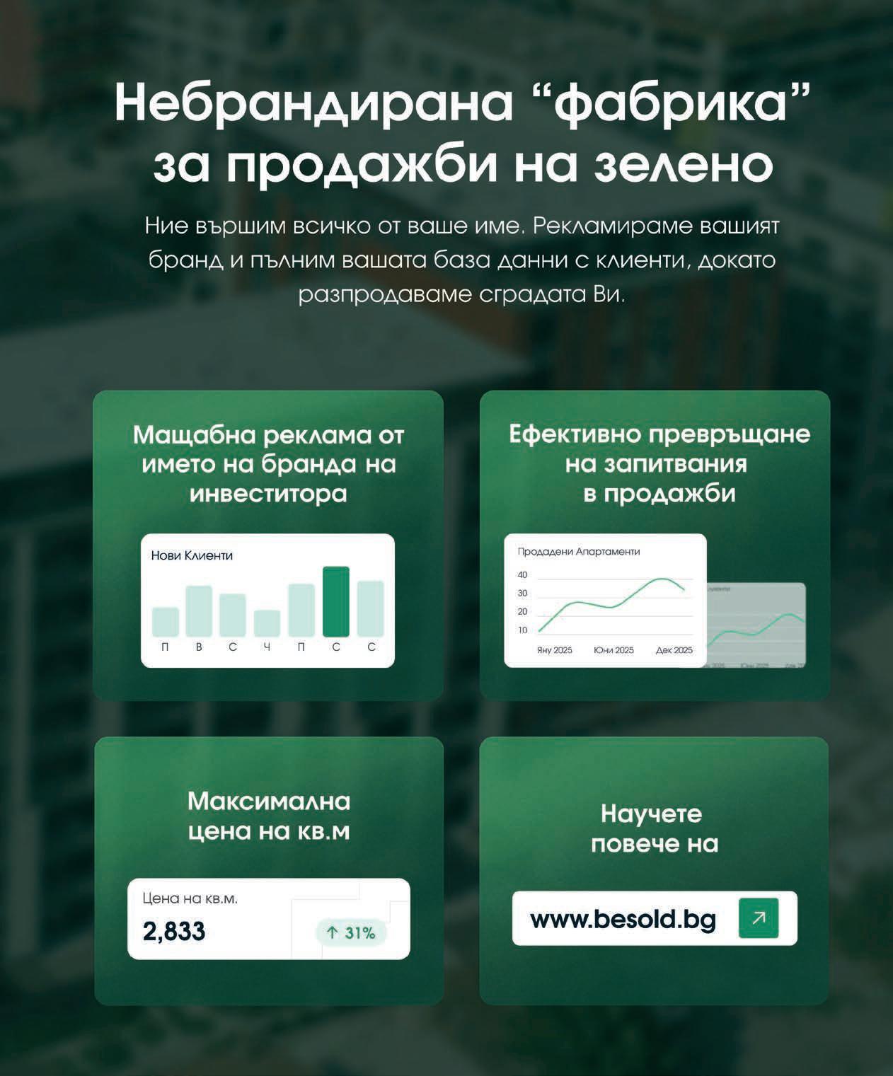 мащаб и класа изисква внимание към всеки детайл и ние подхождаме с нужната прецизност, за да постигнем резултат, който да отговаря на името и амбицията на нашите брандове - да създаваме устойчива градска среда с дългосрочна стойност и безупречна репутация.