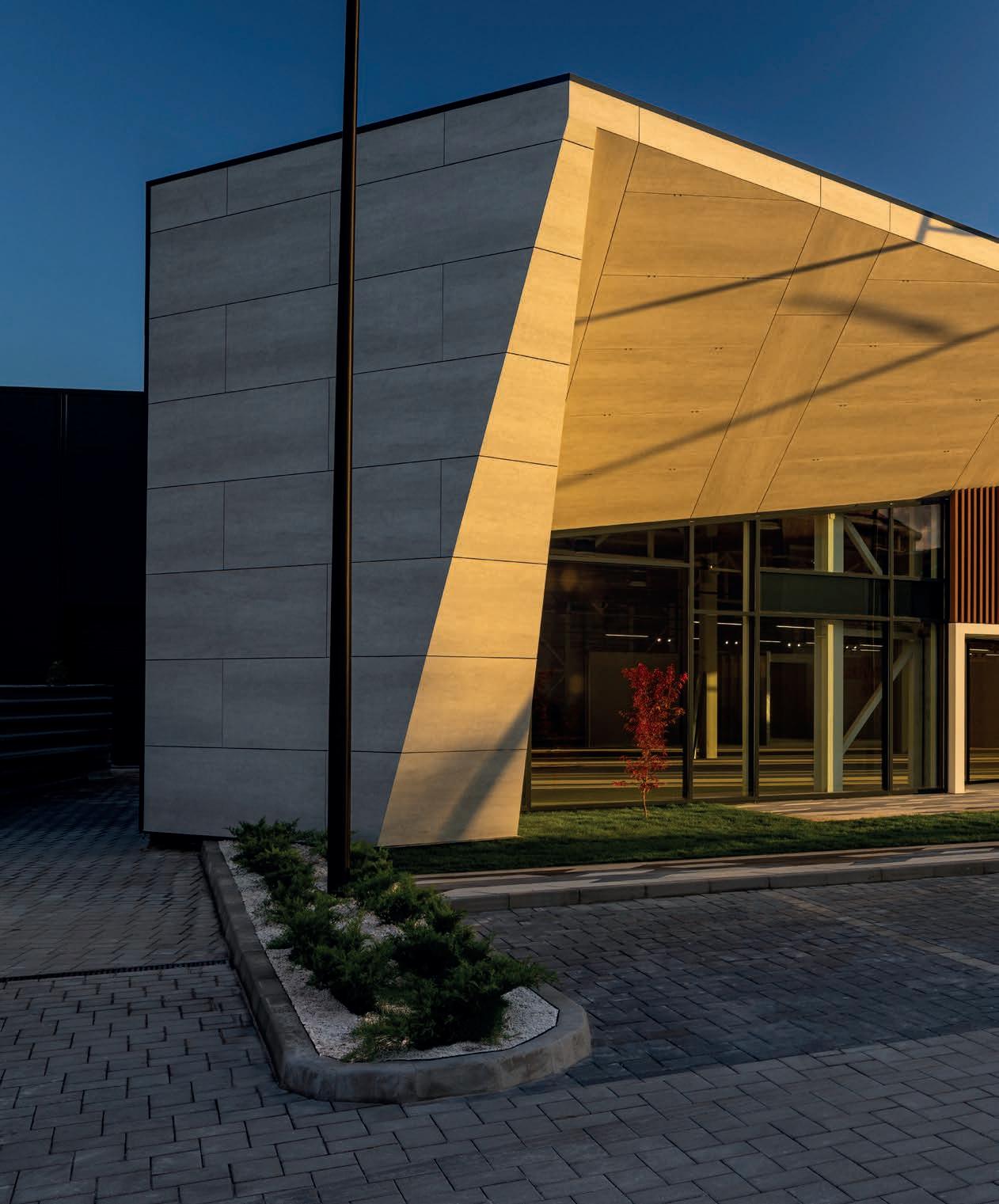 зона. Геометрията и обемите са подчинени на производствения процес, отделните производствени, административни и технически пространства са ясно разграничени и същевременно обвързани визуално и функционално в цялостна композиция.