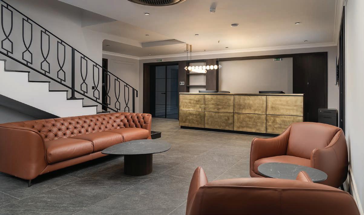 Общите части са предвидени със специално подбран дизайн и материали, които съчетават уют и престиж - нещо, което клиентите ще усещат още при първата стъпка във входното фоайе.