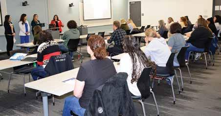 right: Marcia Leake, vice president of human resources, talked with LPN majors.
