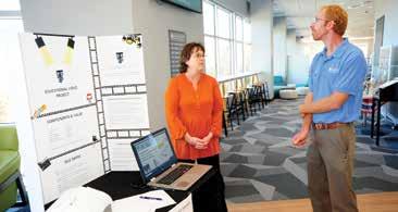 During an interactive session, program HIP (High Impact Practices) designers shared information about their signature work through posters. Attendees took advantage of this opportunity to meet informally with colleagues and asked questions about the assignment design and learned about the piloting of the program HIPs. Pictured here are Stephanie Brown, academic program director for Veterinary Technology, and Spencer Heringa, biology instructor.