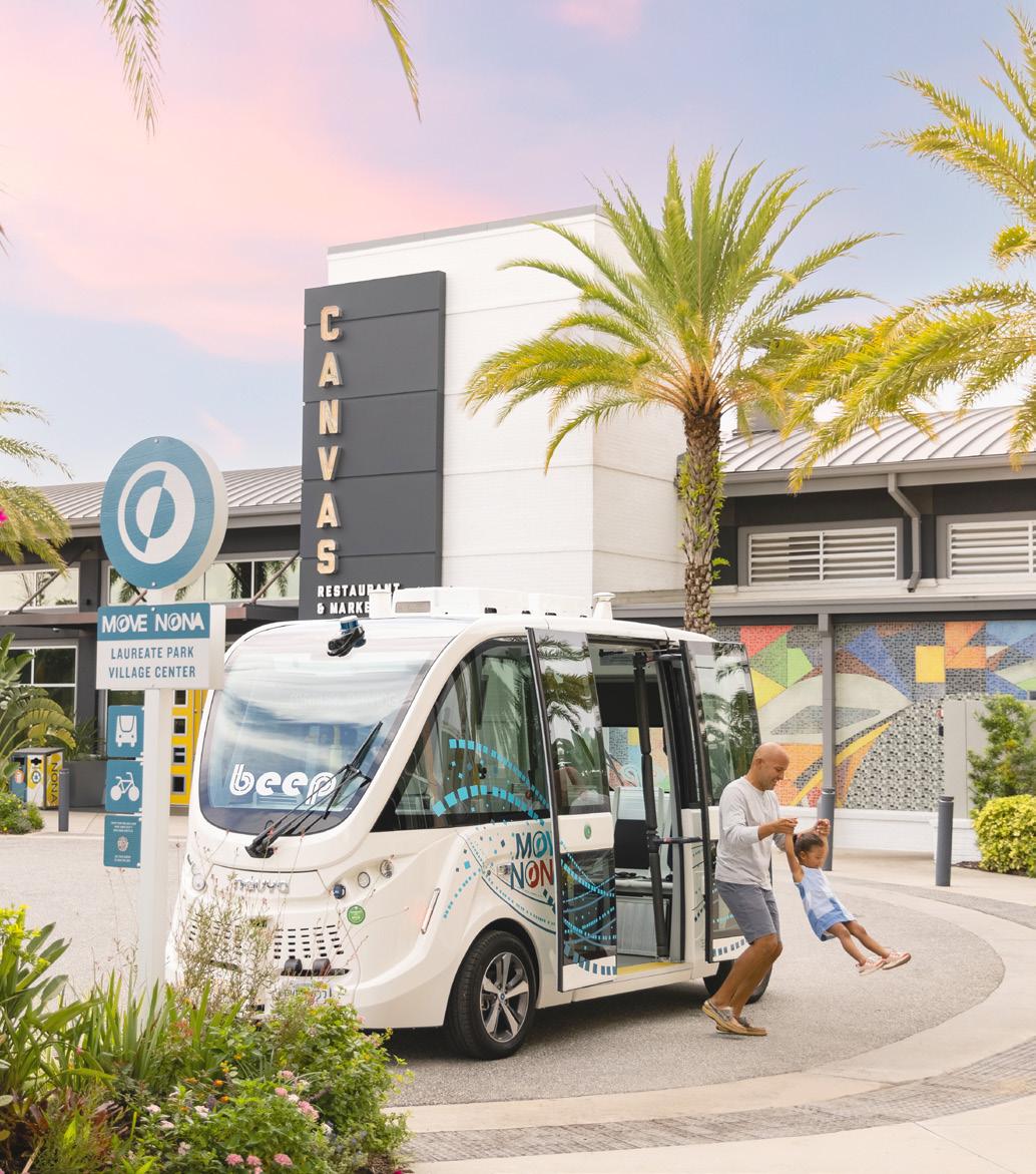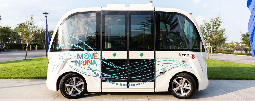 Lake Nona proudly launched the region’s first autonomous shuttle program in 2019 through a partnership with Lake Nona–based Beep, and operated the longest-running singlesite autonomous shuttle fleet in the U.S. The Move Nona program safely transported tens of thousands of passengers, reduced vehicle trips and emissions and generated real-world data that continues to shape the future of smart transportation.