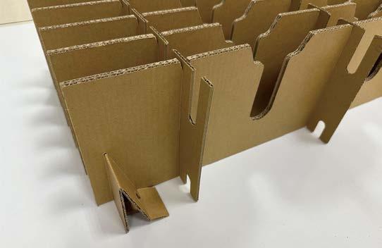 如以卡扣代替黏合 : 在傳統包裝設計中,黏合劑經常被用來連接包裝的各個 部分,無論是塑膠還是紙板,許多材料都依賴膠水、雙 面膠、接著劑…等,進行固定。然而,此類黏貼方式對 於回收過程極為不利。當複合材料透過黏合劑連接時, 這些材料在回收處理過程中難以有效分離,導致回收效 率降低,甚至無法回收,如將紙板與EPE 或其他發泡 材料黏合(圖4-6)。