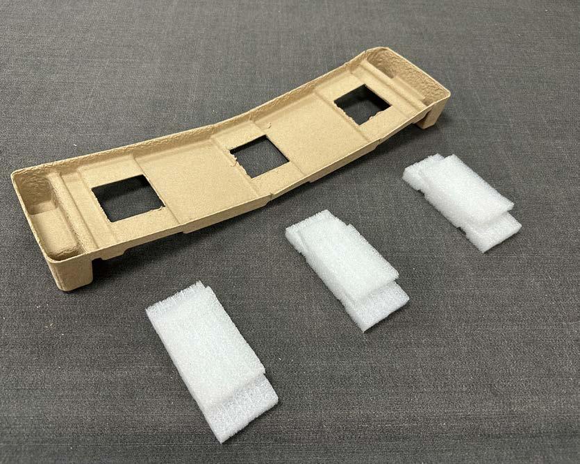 > 對於電子產品等需要多層保護的商品,可以改進內 部填充物的結構設計,利用可壓縮或模塑的材料來 更緊密地包裹產品,從而縮減包裝體積(圖4-5)。